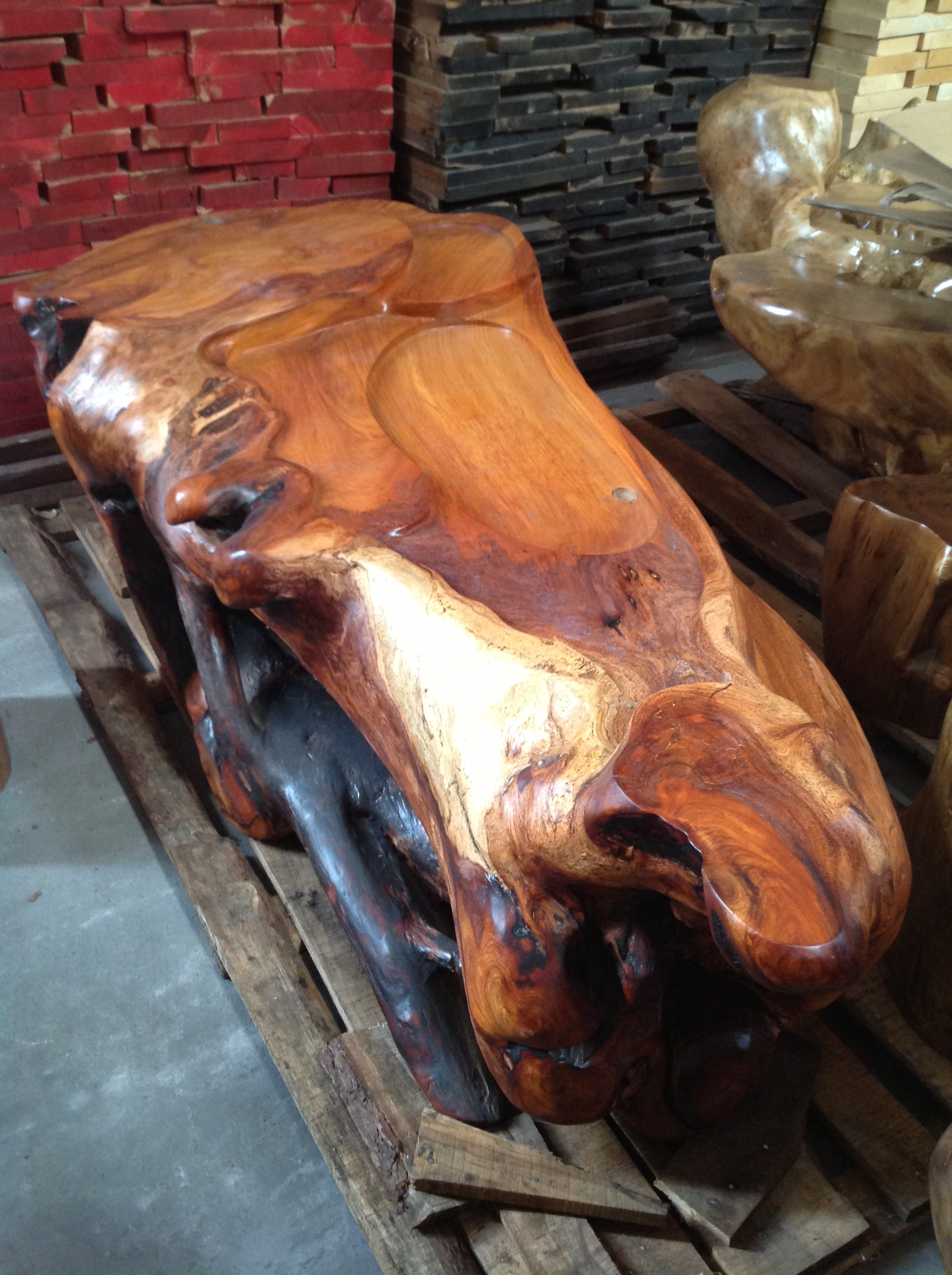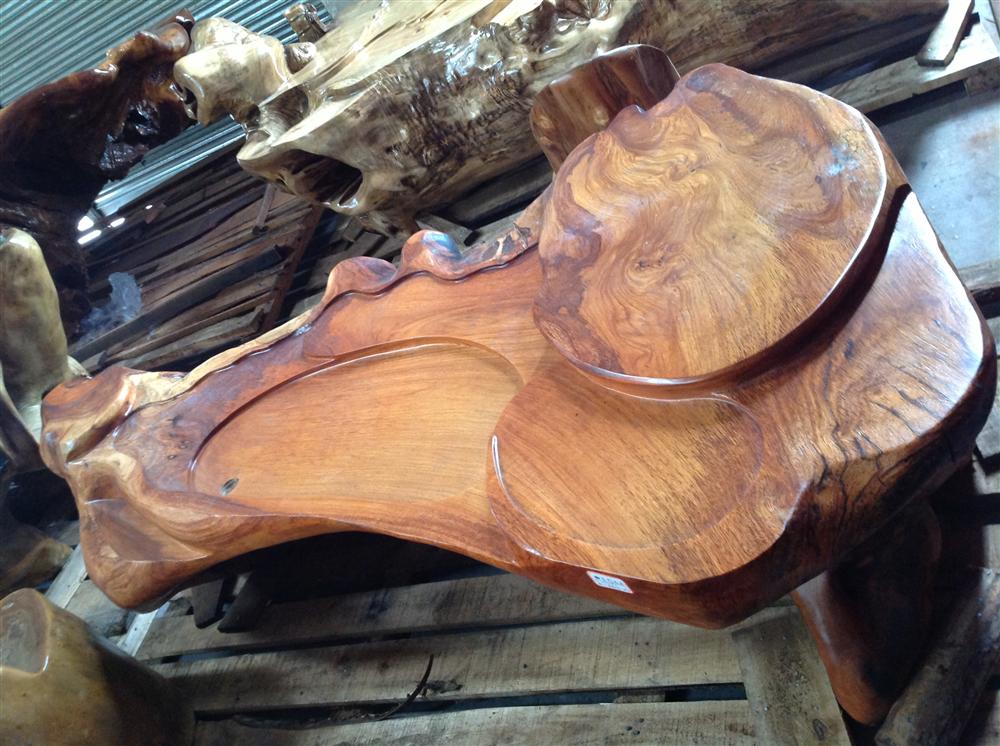 属于缅甸花梨根部雕刻而成的茶台